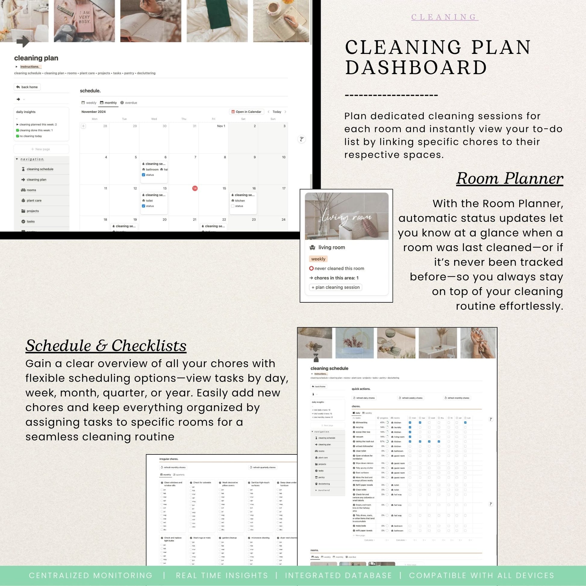 ✔ Custom Cleaning Schedules & Checklists – Plan your cleaning routine with pre-structured lists.