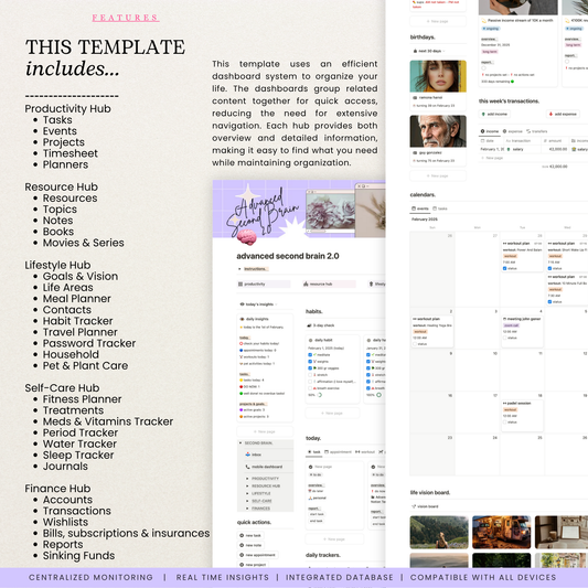 Organize your life & business with our Second Brain notion dashboards!