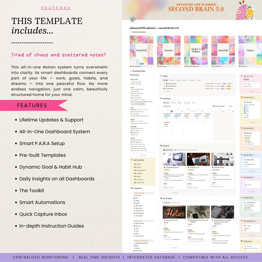 Take control of your life with Advanced Second Brain 3.0 — a game-changing Notion template designed for maximum productivity, clarity, and seamless organization. Whether you're managing projects, setting goals, or tracking your wellness, this all-in-one solution helps you stay focused, structured, and stress-free.